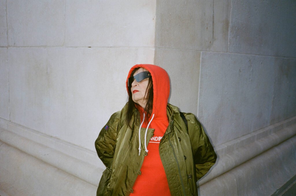 Numa tarde fresca no Washington Square Park, uma mulher de 76 anos, pequena, usando óculos de sol da Versace e