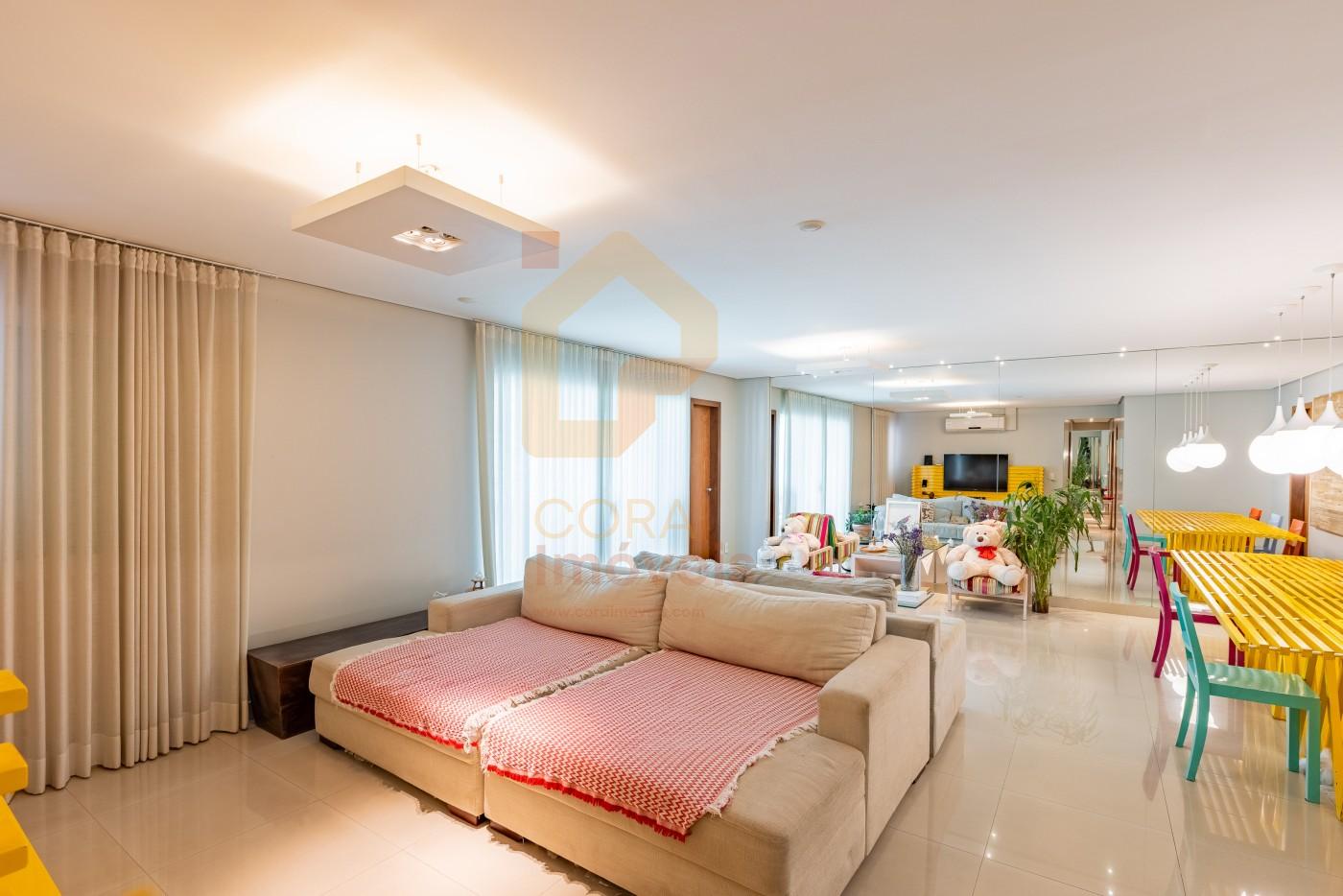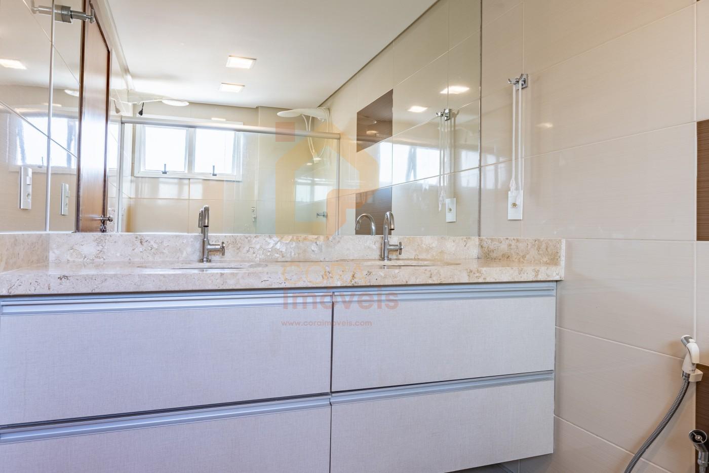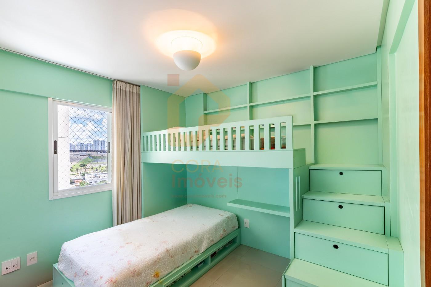 Sala para 3 ambientes distintos; Porcelanato 50×50; Iluminação completa; Cozinha completa em armários; Balcões em granito em toda a cozinha; Varanda grande, com vista para a Rua 55; Todas as suítes completas em armários; Suíte 1 com beliche, para crianças; Suíte 2 convertida em brinquedoteca; Suíte Principal com closet;